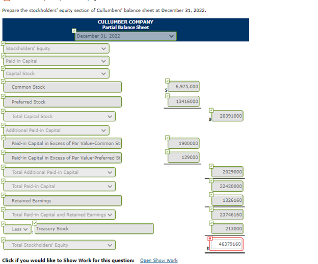 Keep in mind the shareholders interest is a residual one. The total amount of the stockholders equity section is the difference between the reported amount. Every balance sheet must balance.